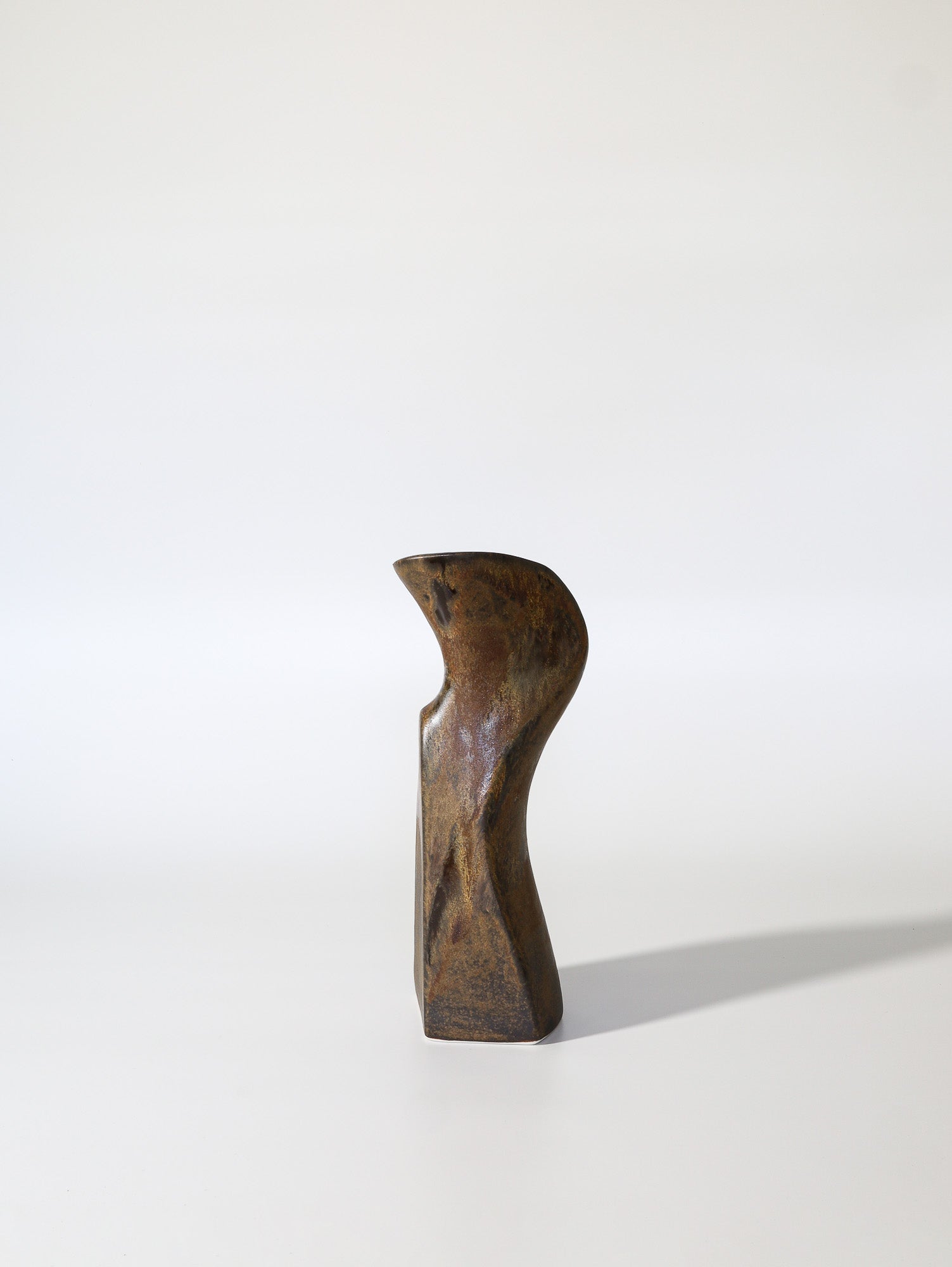 White Stoneware finished with a textured brown matte and glossy glaze.
