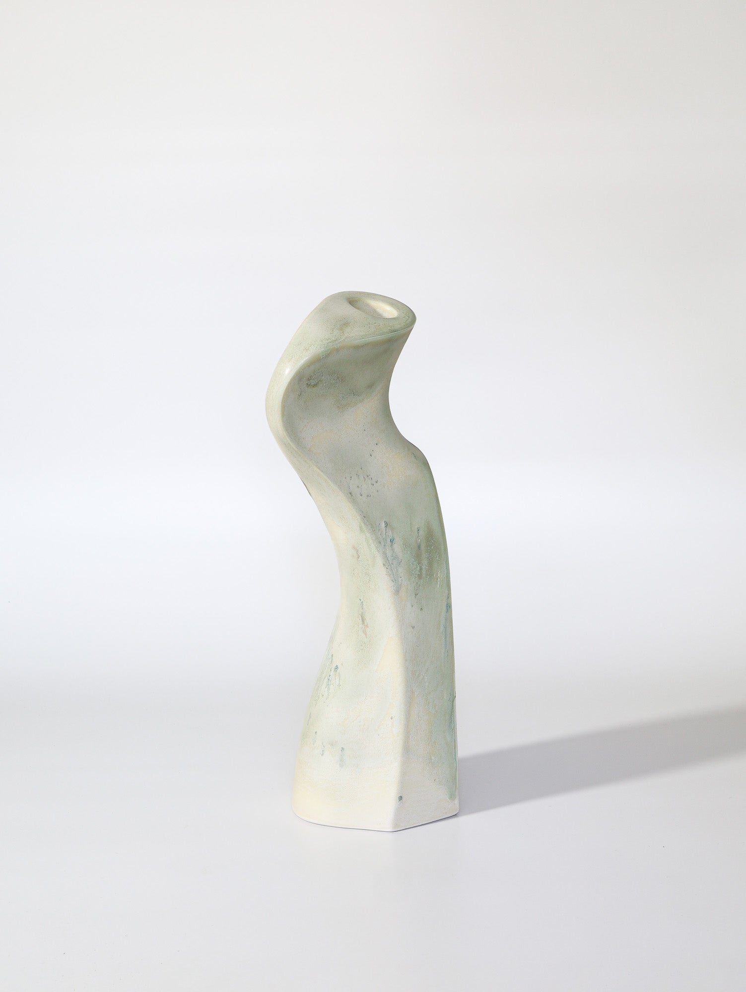 White Stoneware finished with a layered matte cream and green glaze.